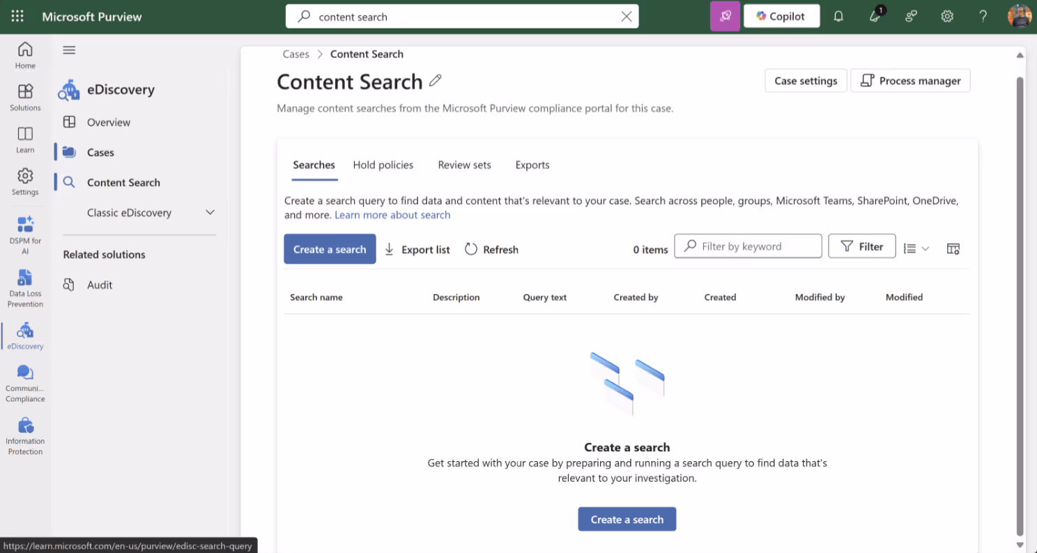 With these insights, you can target actions like securing, moving or deleting sensitive information from places you don’t want it. However, Content Search will soon be deprecated. The new experience can be seen below: