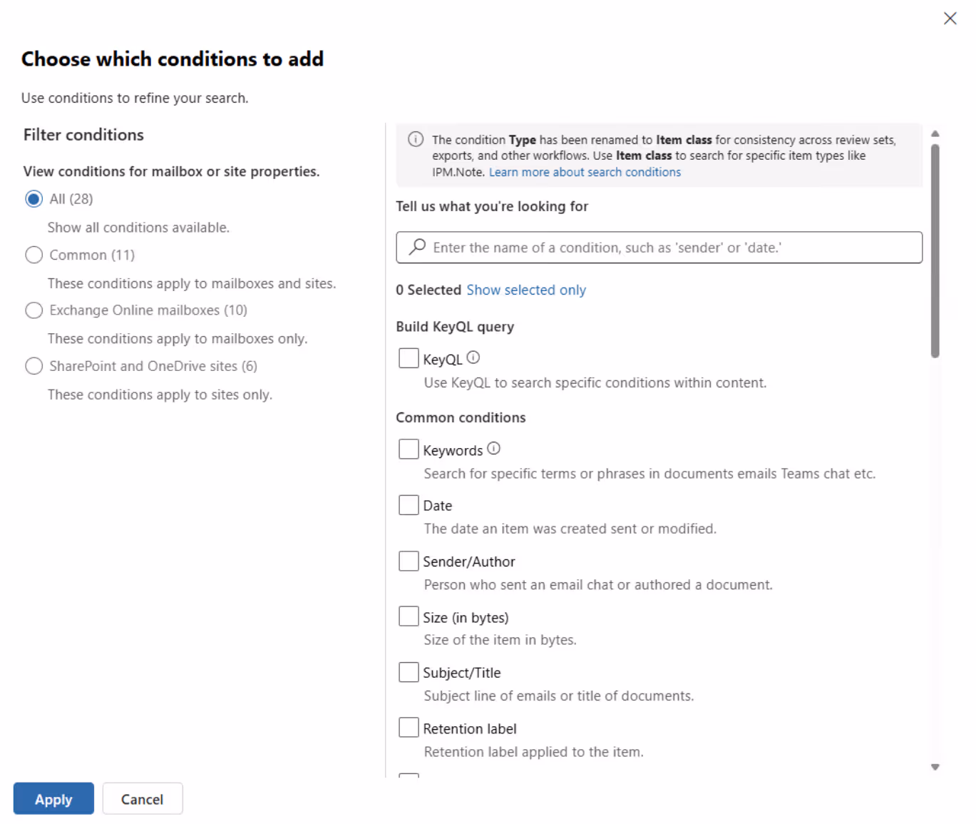 The “Condition builder” will, in our example, search for driver’s license and passport numbers in SharePoint and OneDrive.