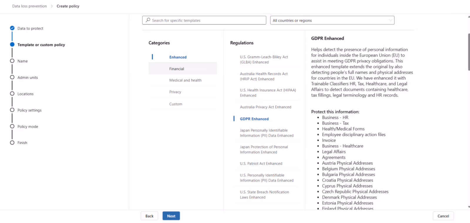 In this case, I've chosen sensitive information types in combination with SharePoint and OneDrive: