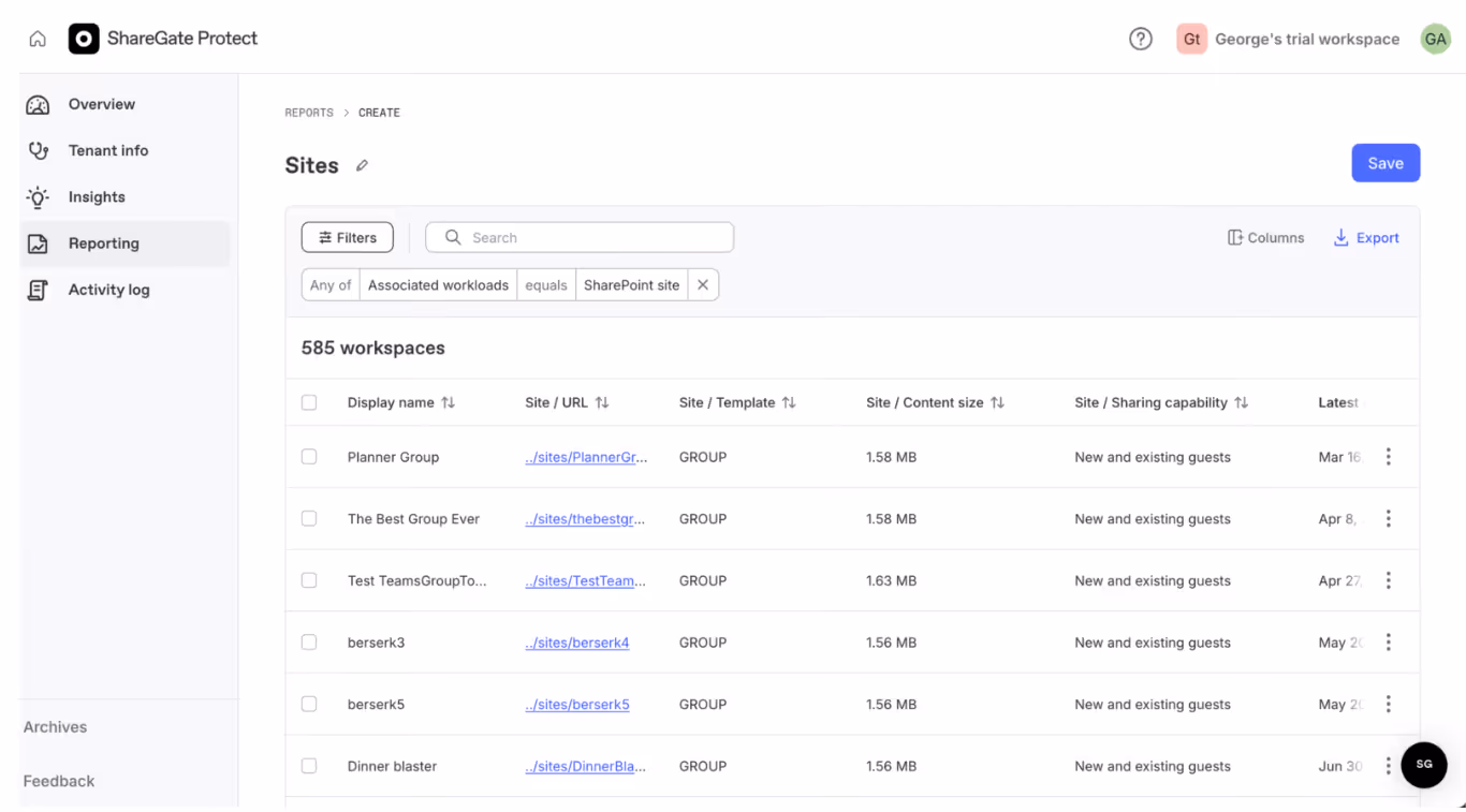 - Tools like ShareGate Protect help IT teams see license usage, clean up inactive workspaces, and reclaim storage.