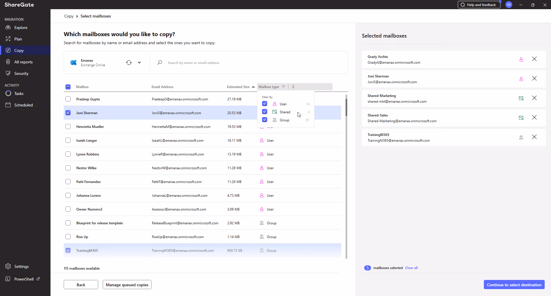 Migrate Microsoft 365 mailboxes from tenant to tenant with ShareGate
