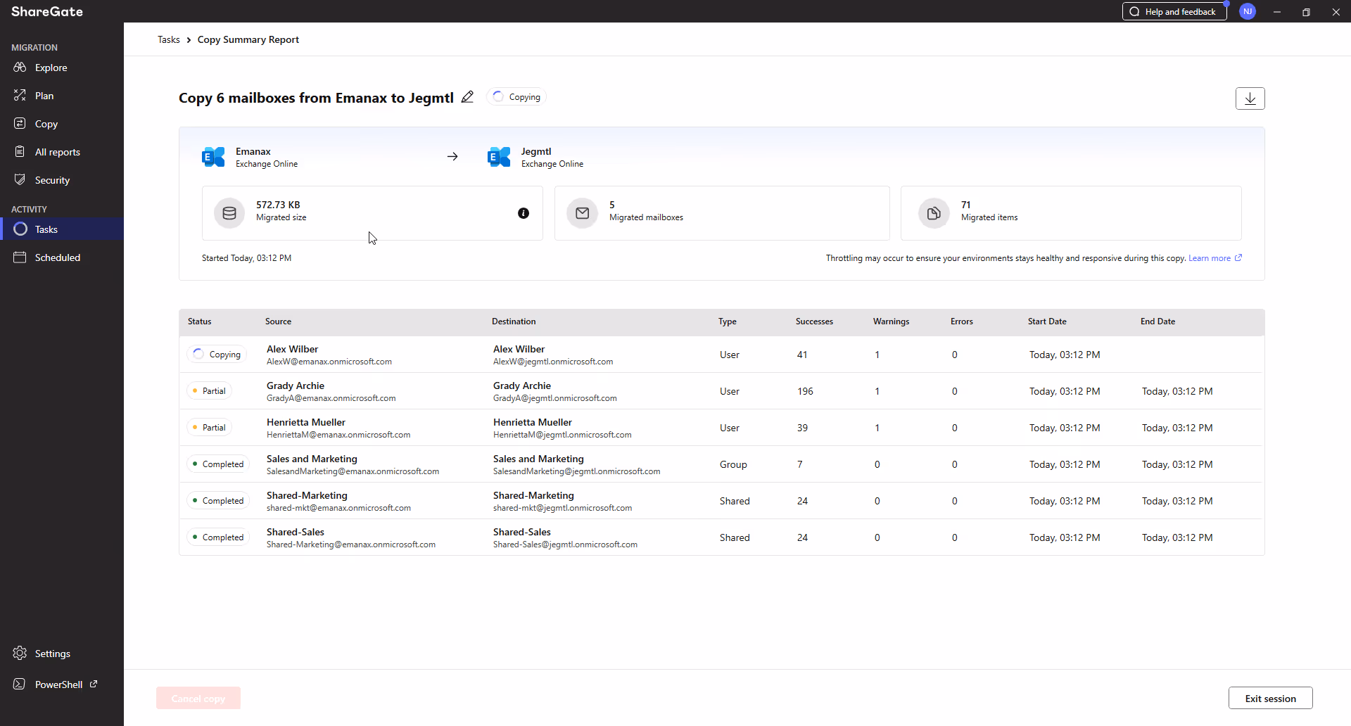 Step-by-step walkthrough of migrating Exchange Online mailboxes with ShareGate Migrate