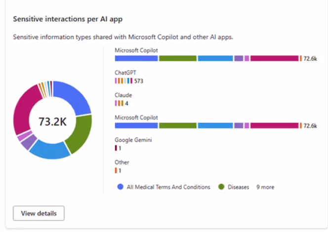 Still in preview, Data Security Posture Management (DSPM) already offers helpful visibility into how AI tools are interacting with your organization’s sensitive info. Here’s a quick look at the kind of insights it can provide: