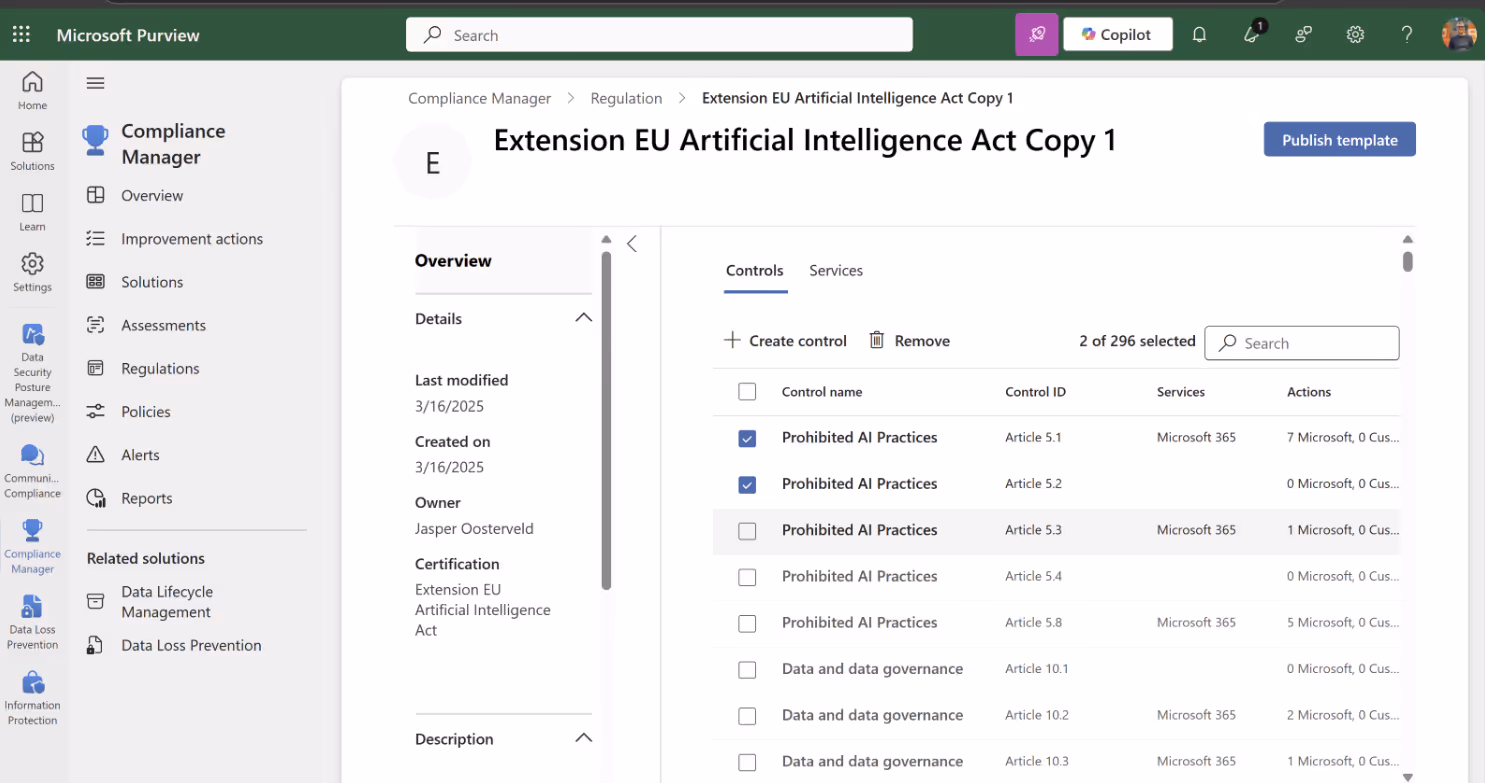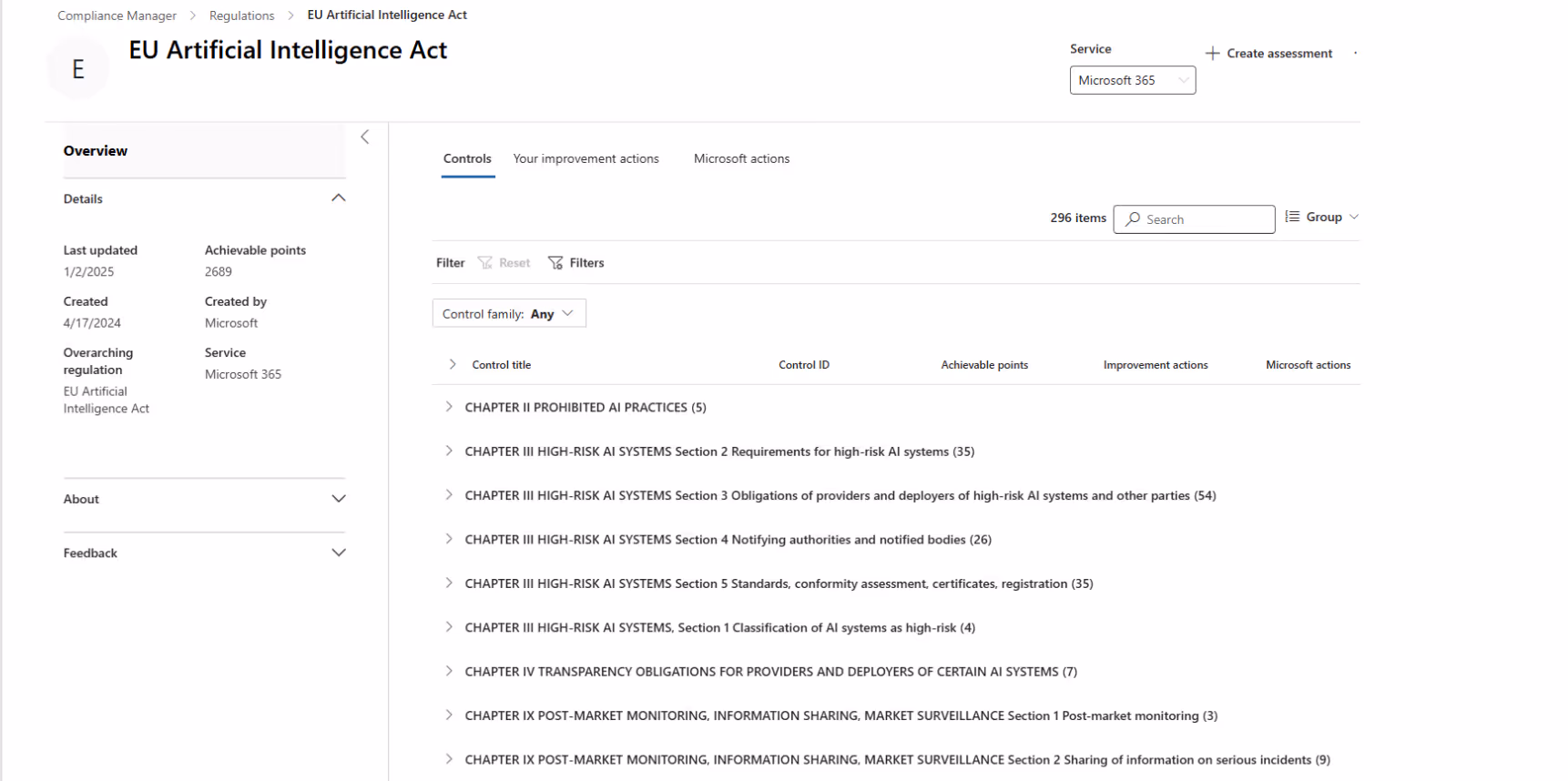 If you’re working in Microsoft 365, you can use Microsoft Purview Compliance Manager to review your tenant against the latest regulations. Just pick an assessment that matches your region and industry.
