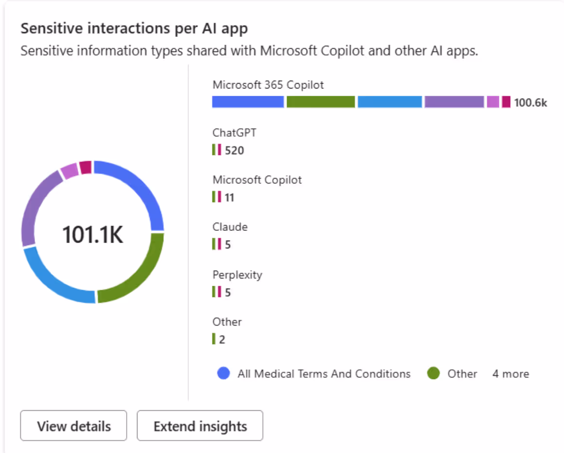 The activity explorer has been around the Microsoft Purview block for years. The DSPM for AI Hub provides an out-of-the-box integration with AI interactions: