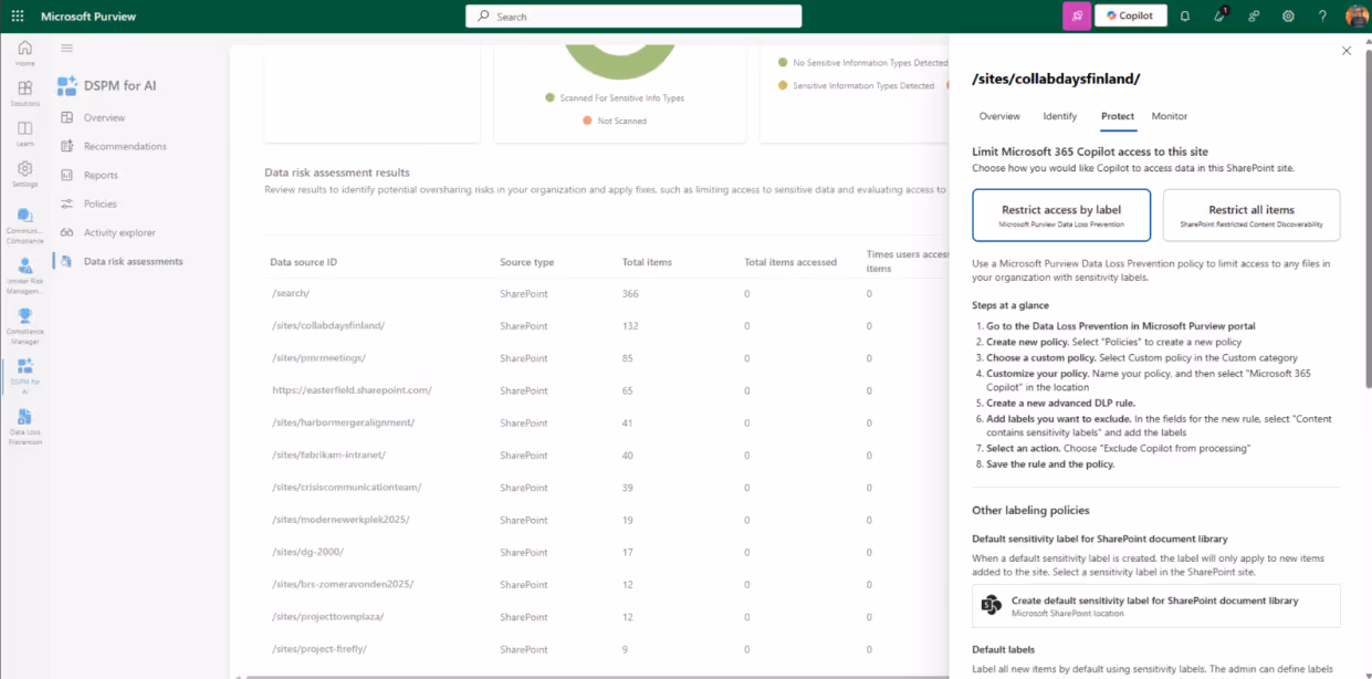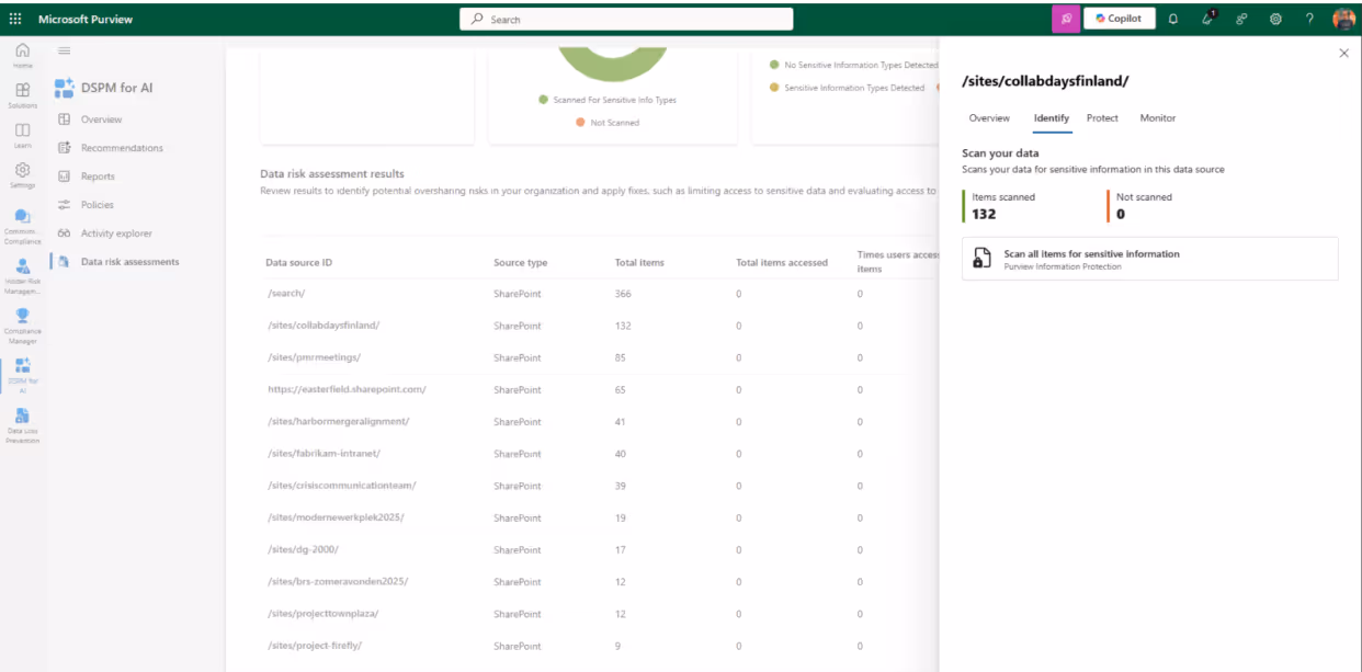 Once you’re done in the “Get started” menu, it’s time to let the DSPM for AI hub analyze your Microsoft 365 environment for at least 24 hours.