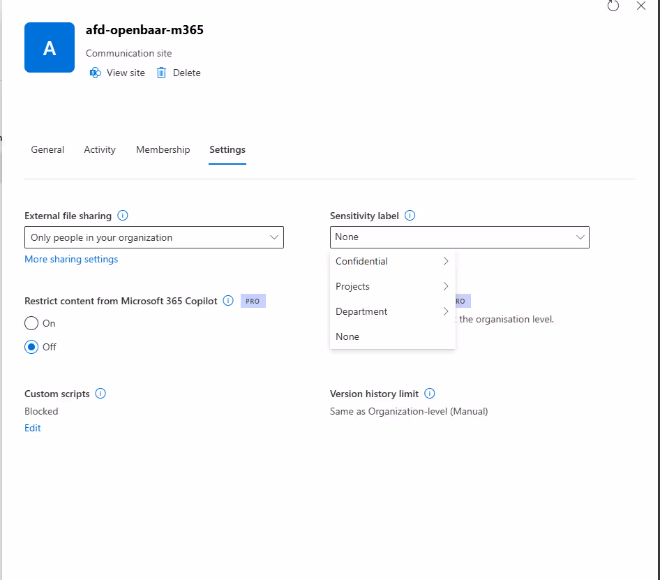 - Privacy of Microsoft 365 groups and team sites: Determine the privacy settings (i.e. public or private) for that sensitivity label.