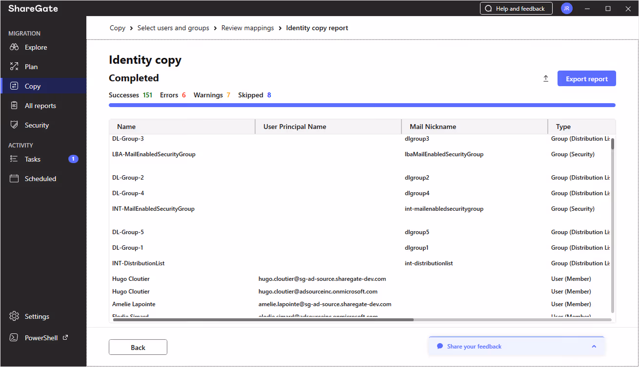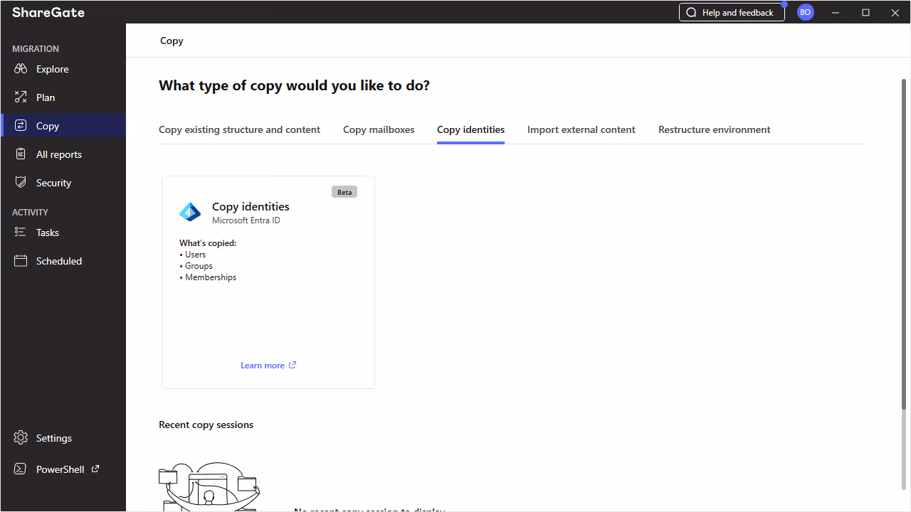 If you’re already a Pro or Enterprise customer, open up ShareGate Migrate, navigate to Copy, then choose the Copy identities tab.
