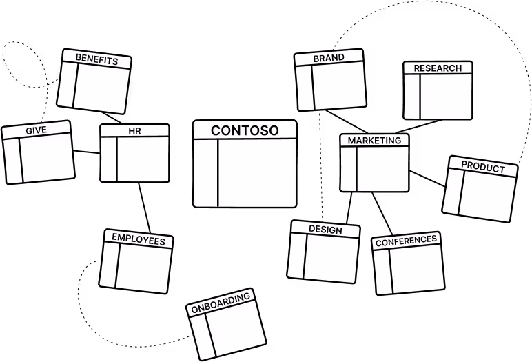 - Define hubs (e.g., by division) and attach project/department sites with clear purpose statements.
