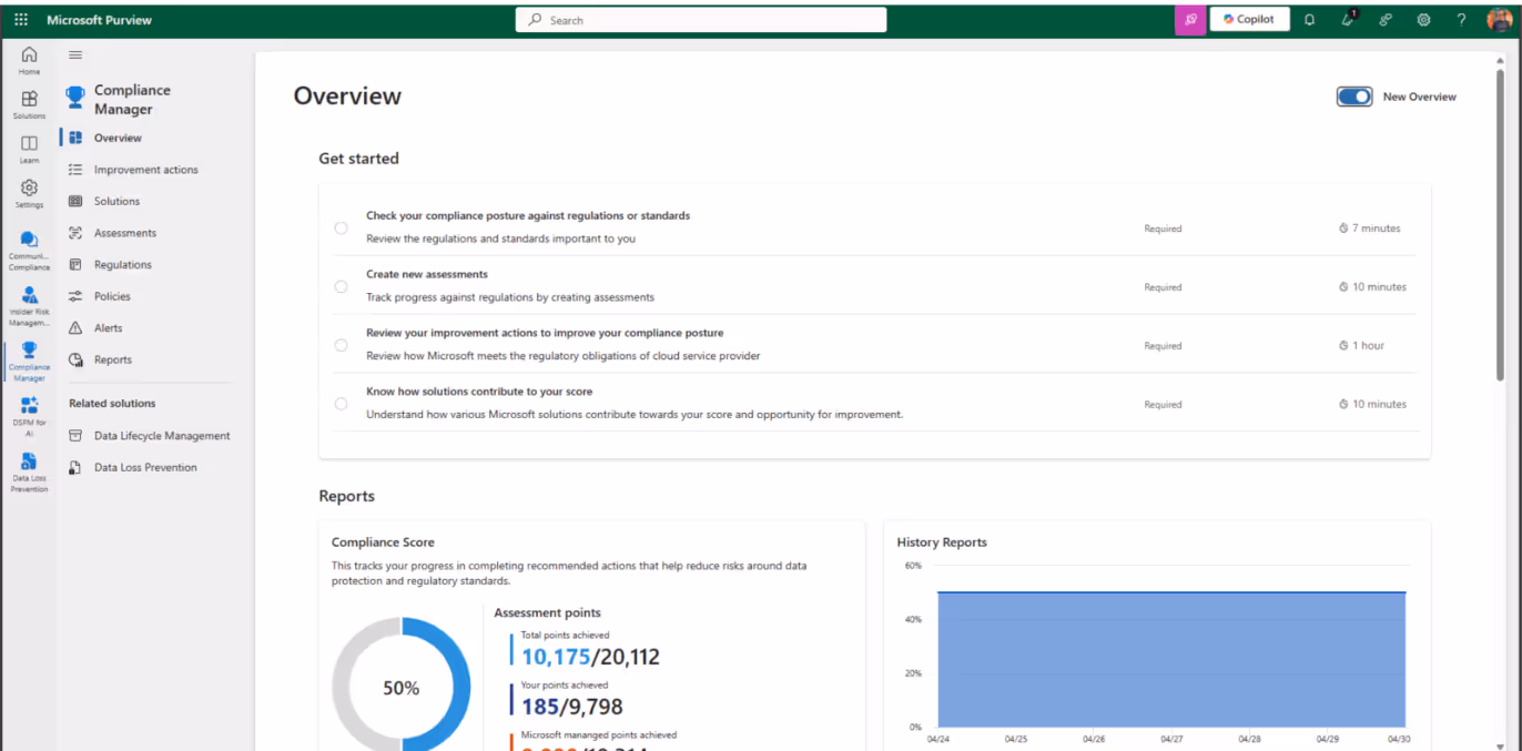 When you first open it in the Microsoft Purview Administration Center, toggle the New Overview to see your compliance score breakdown.