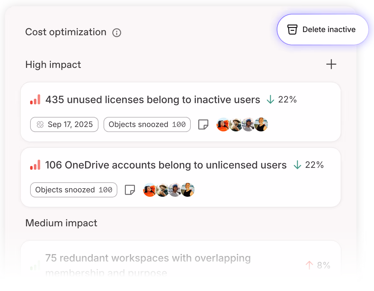 - Spot unused or orphaned licenses still adding to monthly spend.