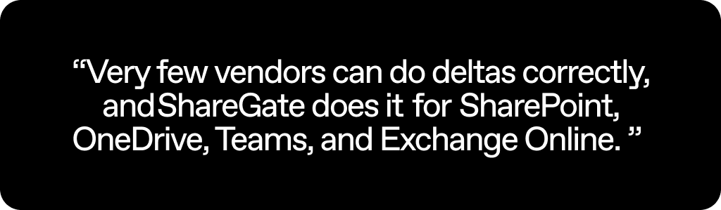 “Very few people can do delta migrations for SharePoint, OneDrive, Teams, and Exchange Online correctly, but ShareGate does.”