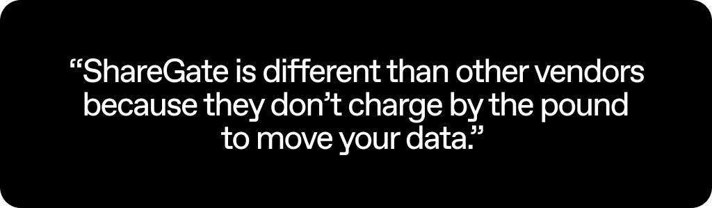 “I always say ShareGate is different from everyone else because they don’t charge by the pound to move your data,” Maggi says.