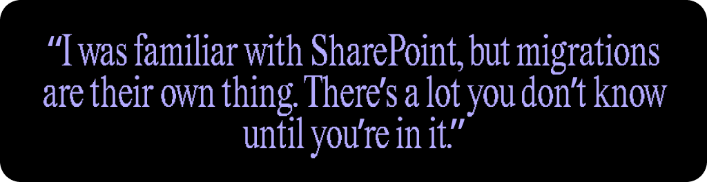 - Strong SharePoint expertise, but new to Microsoft 365 migrations