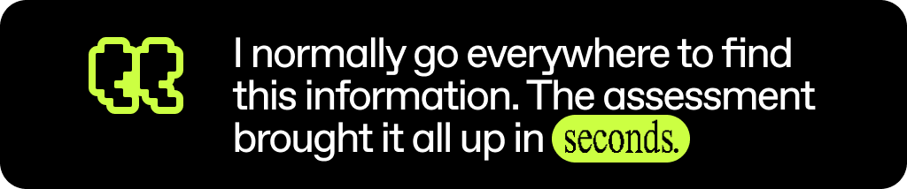 “I normally go everywhere to find this information,” she says. “The assessment brought it all up in seconds. Literally seconds.”